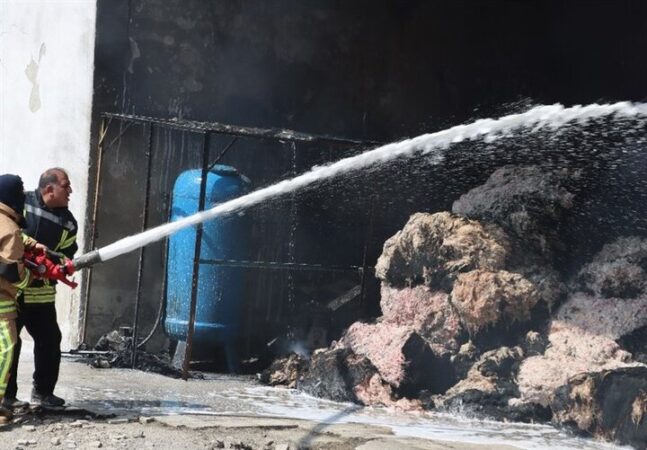 آتش‌سوزی گسترده در کارگاه تولید الیاف ماهدشت مهار شد
